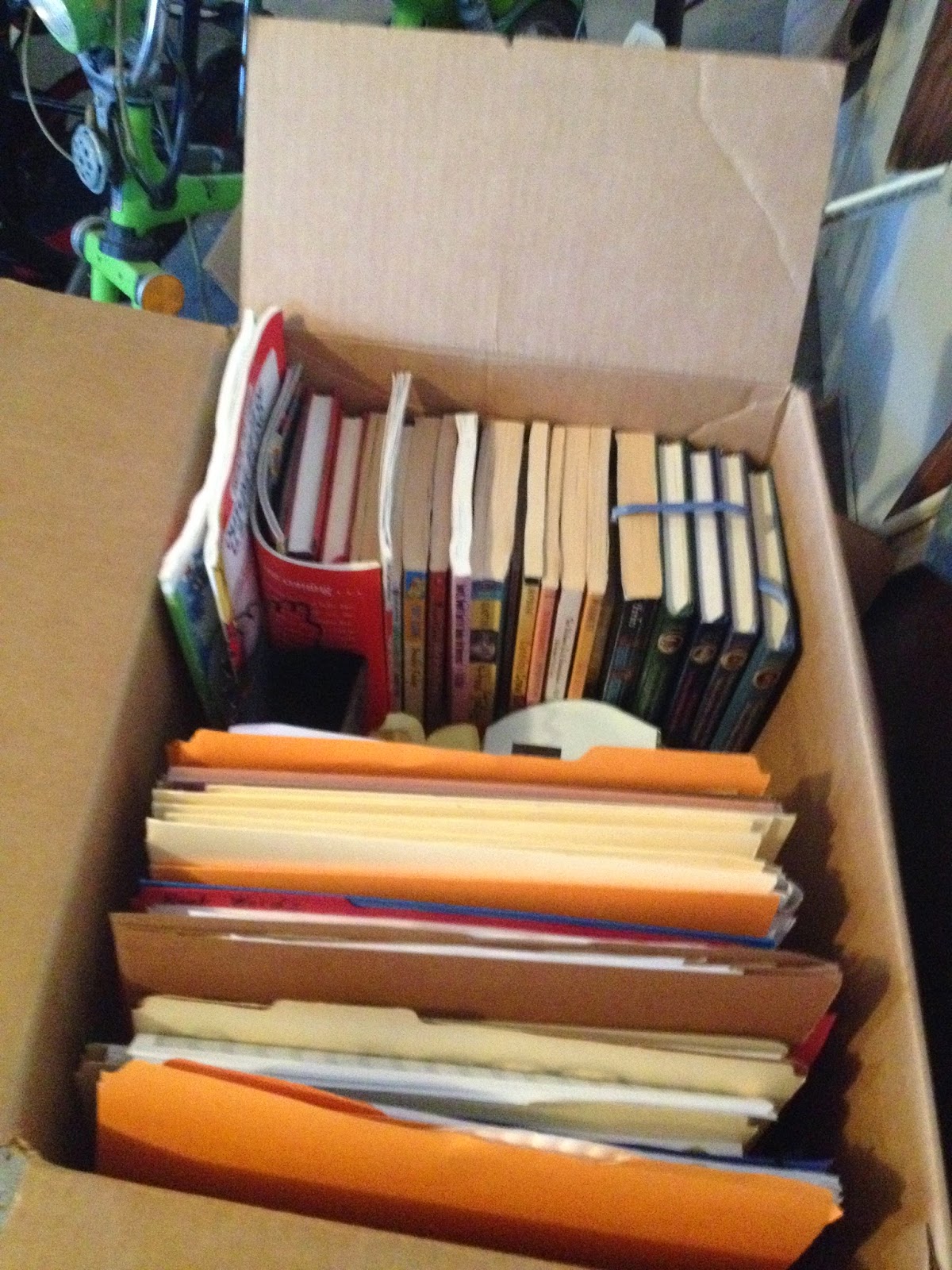 Day 6 Thoughts: I'm discovering that even if I do go back to teaching in a public school someday, I really don't need this stuff now, and five years from now, it won't be relevant in the classroom at all. Okay, I can do this! Four more boxes from my old classroom to conquer.